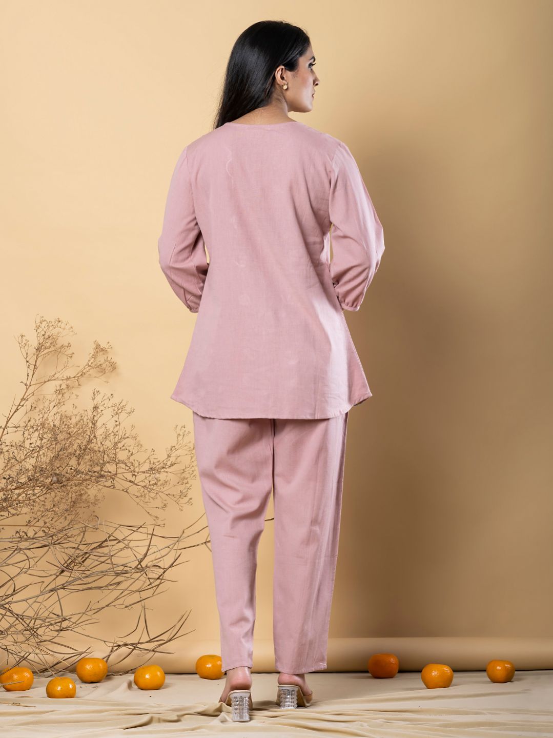 Curved style cotton flex fabric mauve color co-ord set