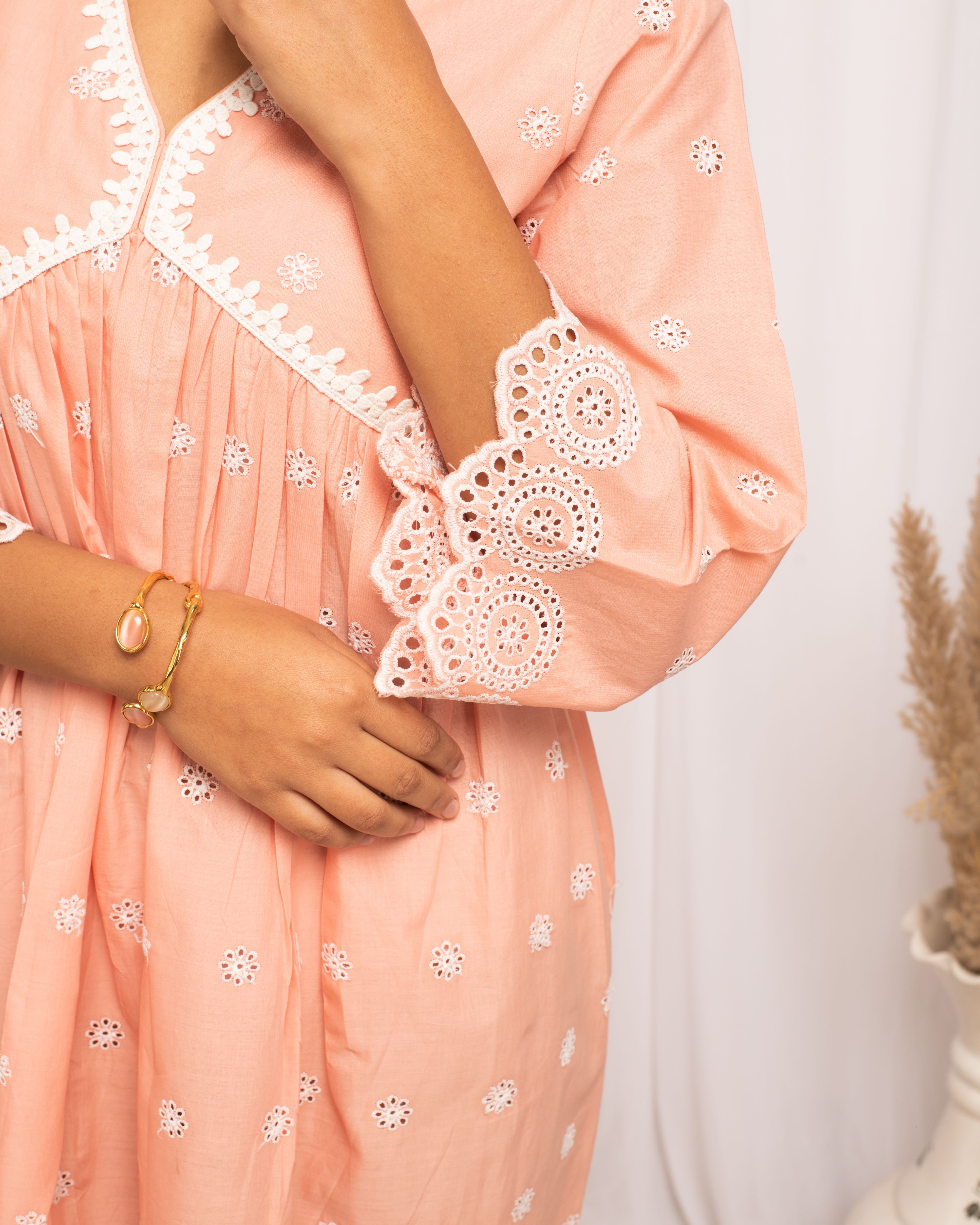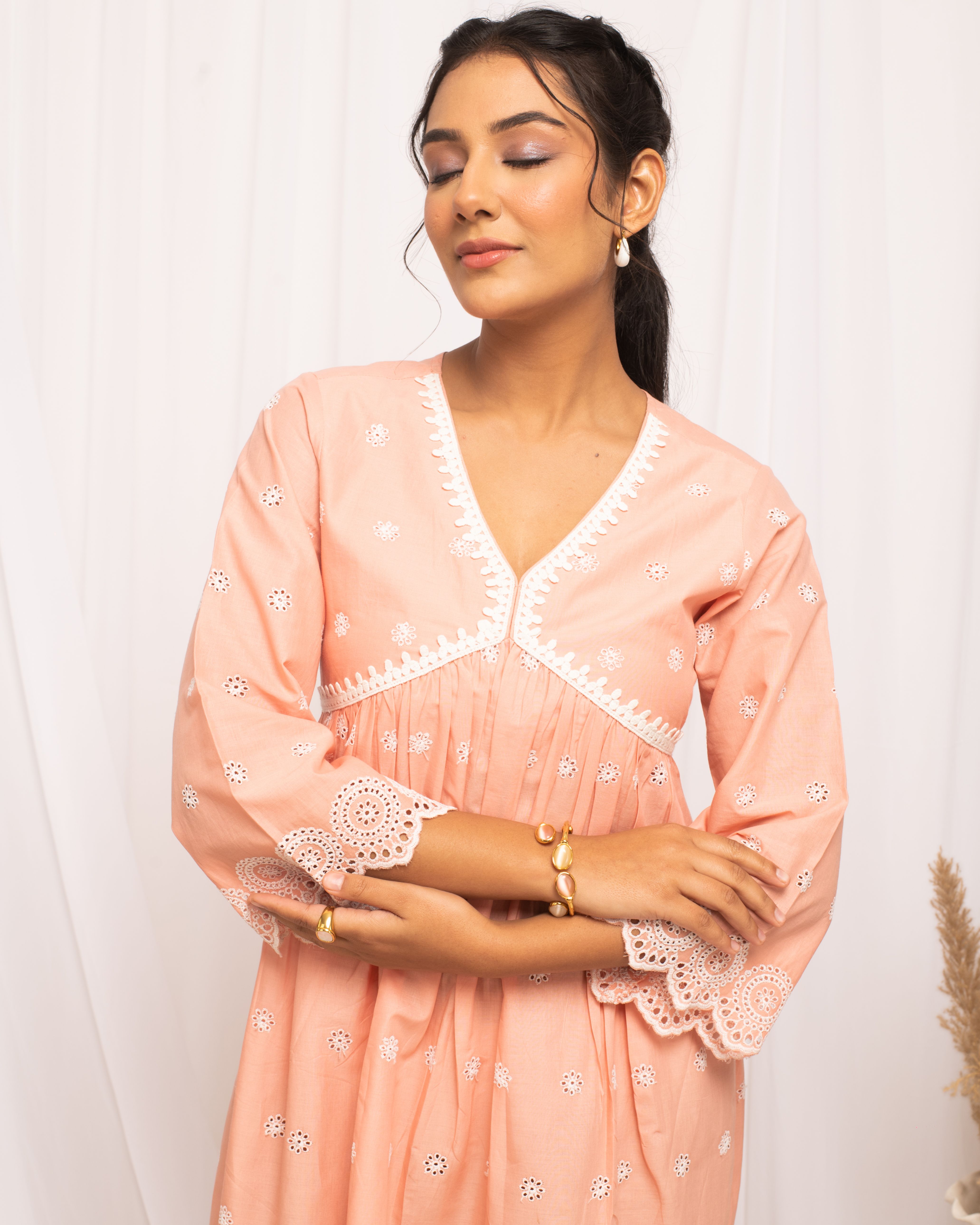 [4] => Peach Schiffli Work Cotton Skater Dress