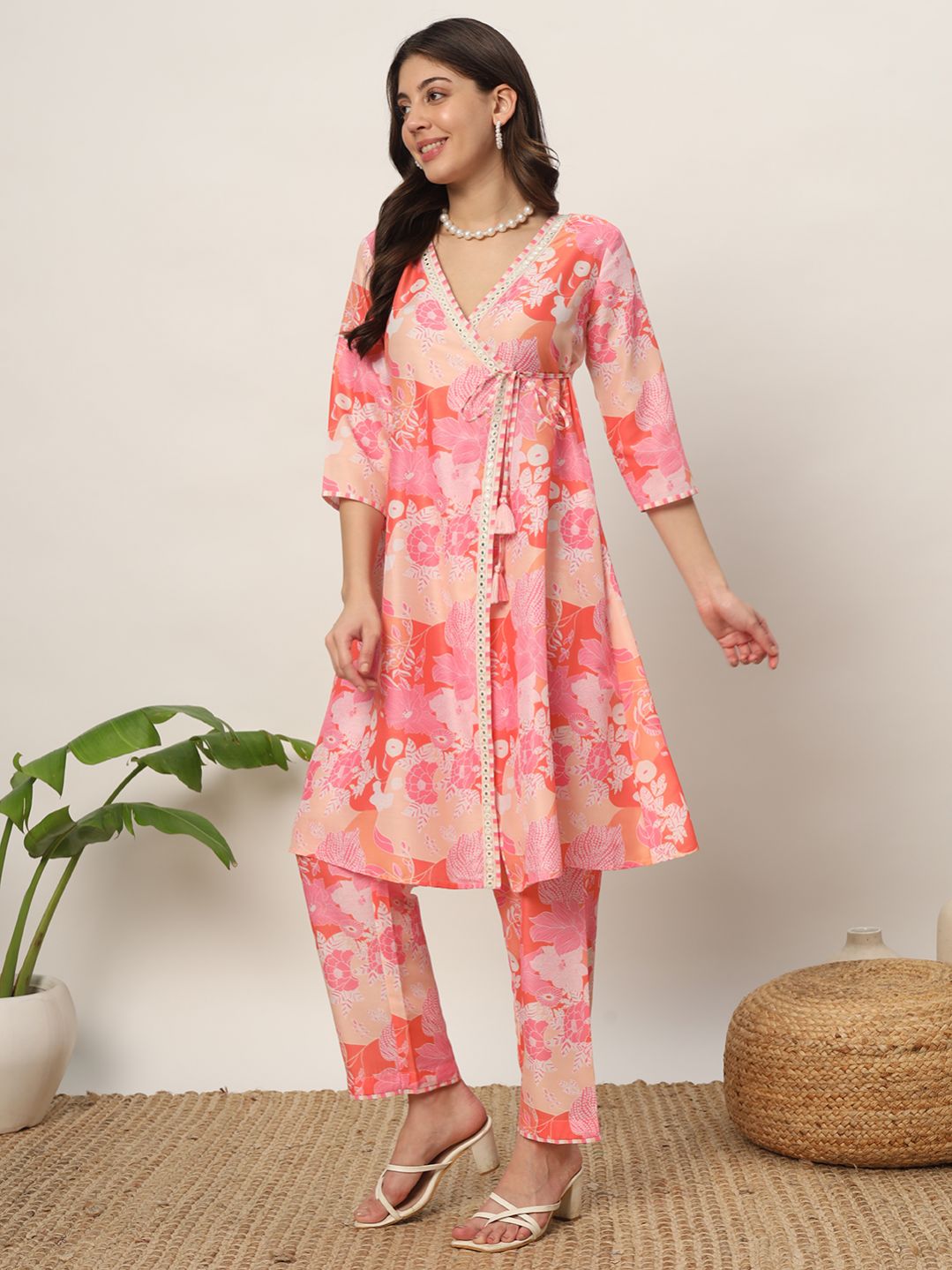Infuse your wardrobe with a breath of fresh air with MIAOW pink floral Kurta Set. Crafted from a luxurious cotton blend, this set features a charming floral print that adds a touch of elegance and freshness. Perfect for any occasion, it combines comfort and sophistication effortlessly. Styling Suggestion: Enhance the look with delicate silver jewelry and classic nude heels. A subtle pink or beige clutch will complete the ensemble, ensuring you look poised and polished at every event.