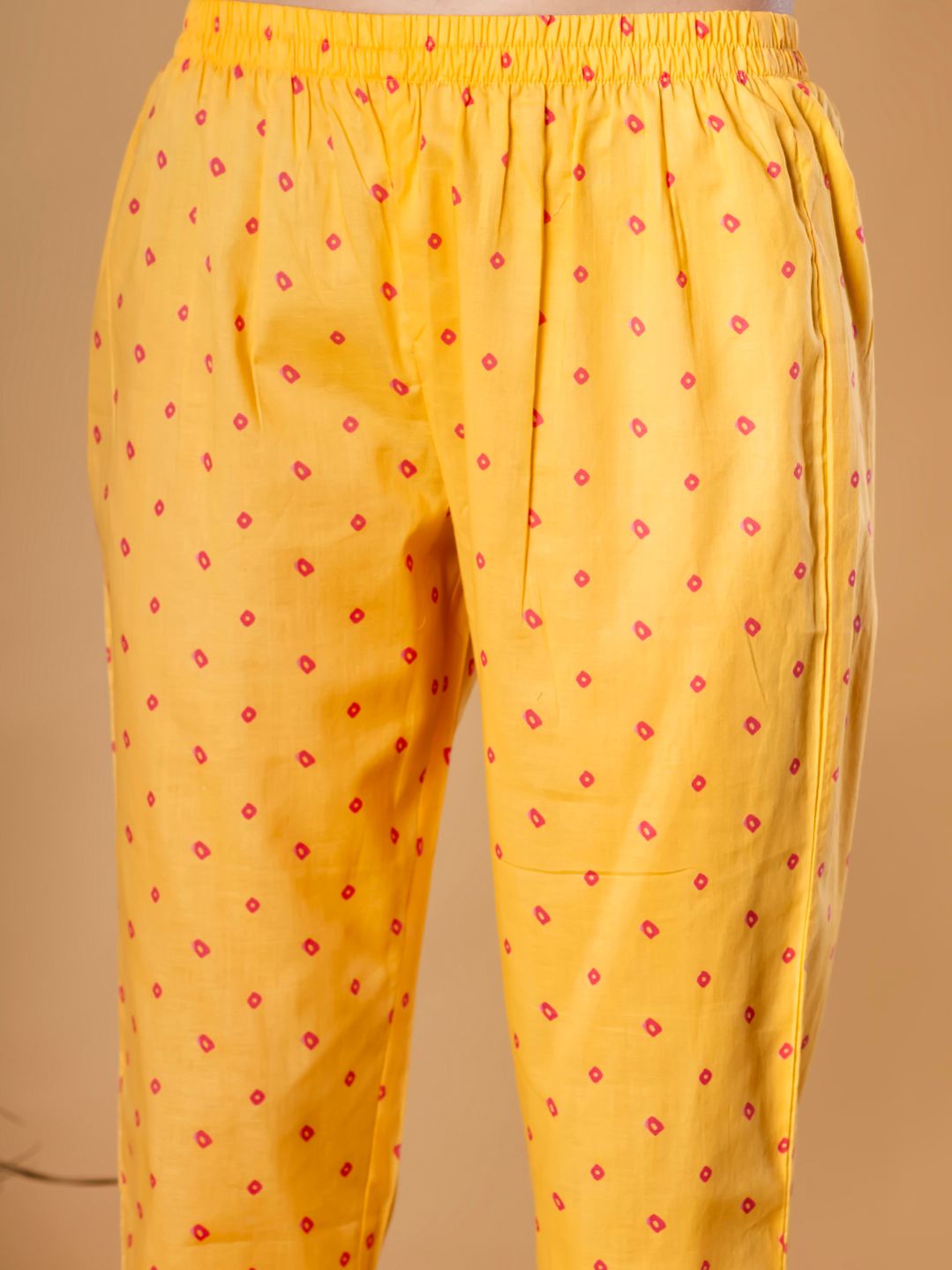 Straight style cotton fabric yellow color kurta and bottom with dupatta