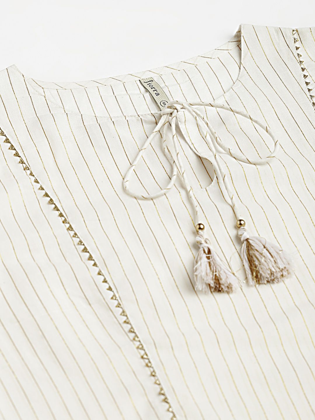 Radiate elegance with MIAOW off-white kurta set. Crafted from pure cotton, this calf-length kurta features a graceful keyhole neck and full sleeves, with a flared design that adds a touch of timeless charm. Paired with palazzo pants and a beautifully printed chanderi dupatta, this ensemble is perfect for adding a refined touch to any festive or party occasion.