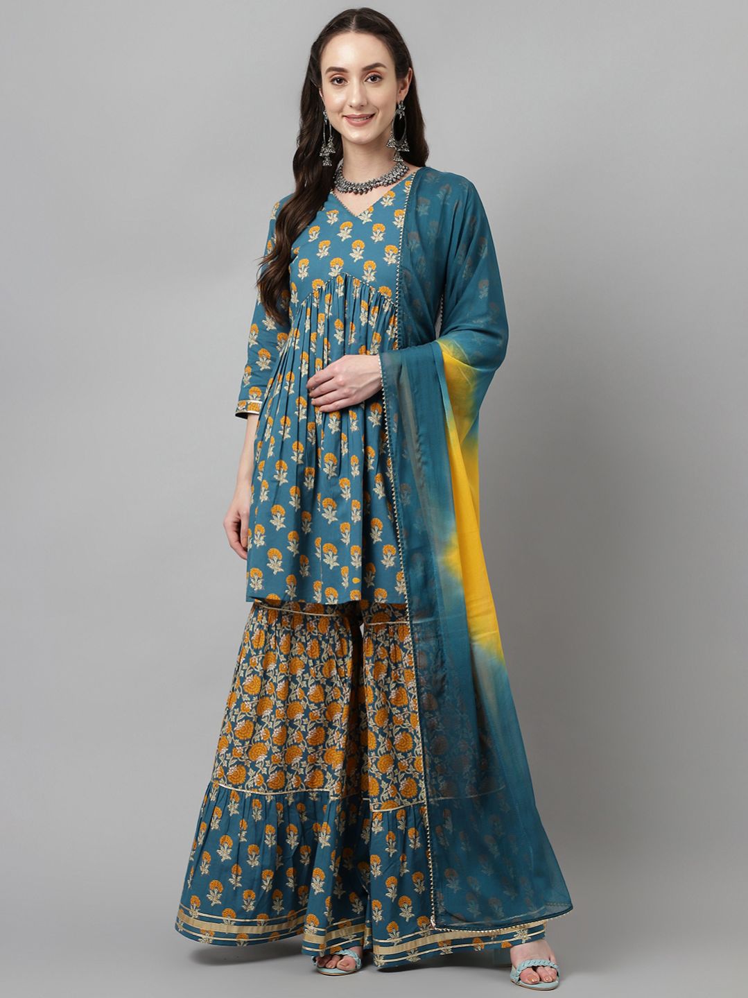 [3] => Pure Cotton Flared Kurta with Sharara and Dupatta