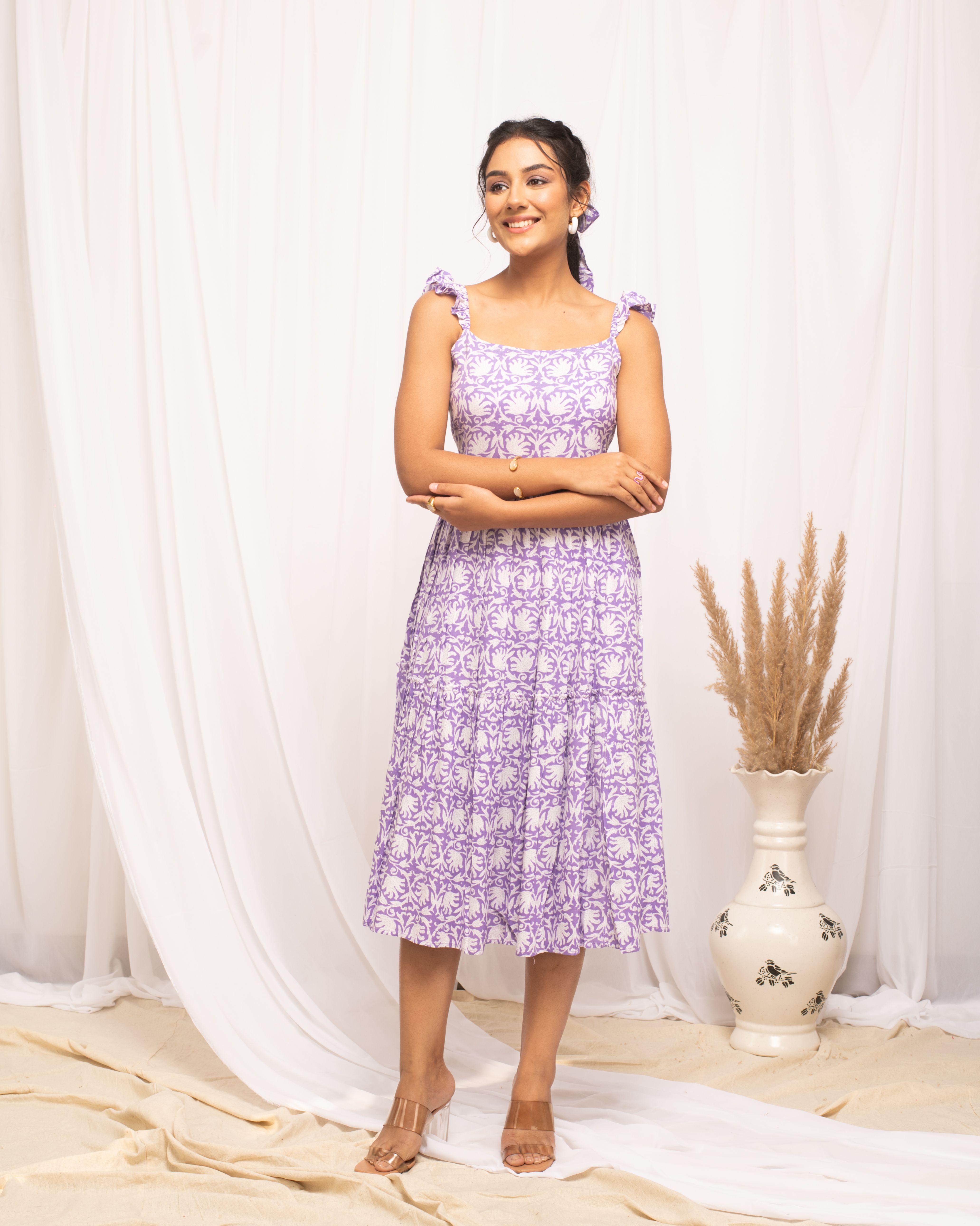 Breathe new life into your wardrobe with MIAOW Lavender Cotton Floral Printed Dress. This lovely dress, crafted from soft cotton and adorned with delicate floral prints, offers a touch of elegance and whimsy. Dress Material: Cotton Style: Skater Dress || Knee Length with Sleeveless Package contain: 1 Dress Styling Suggestion: Elevate your look with strappy nude sandals and a light, pastel-toned clutch. Add a pair of subtle hoop earrings and let your hair fall in soft waves for a dreamy, feminine finish.