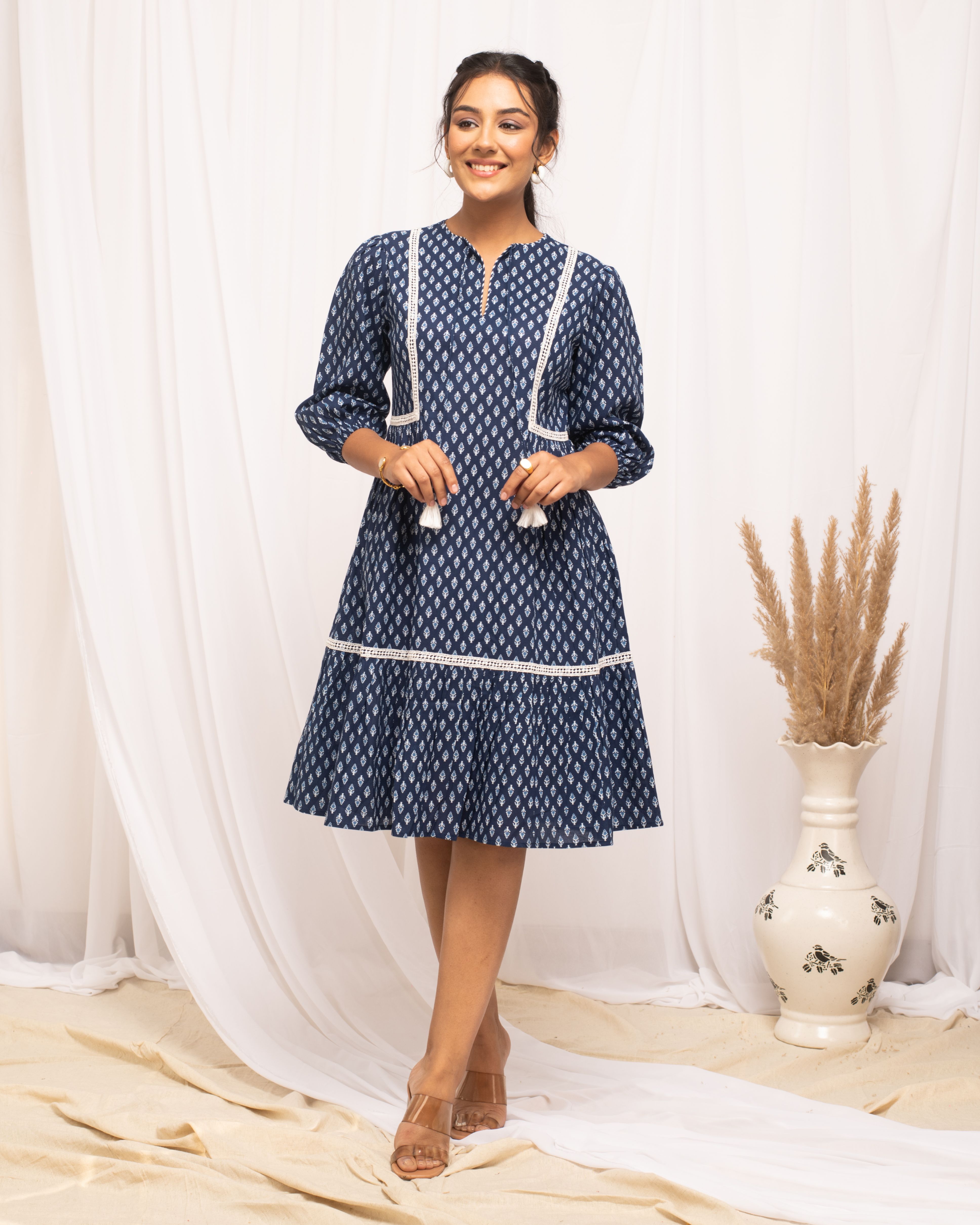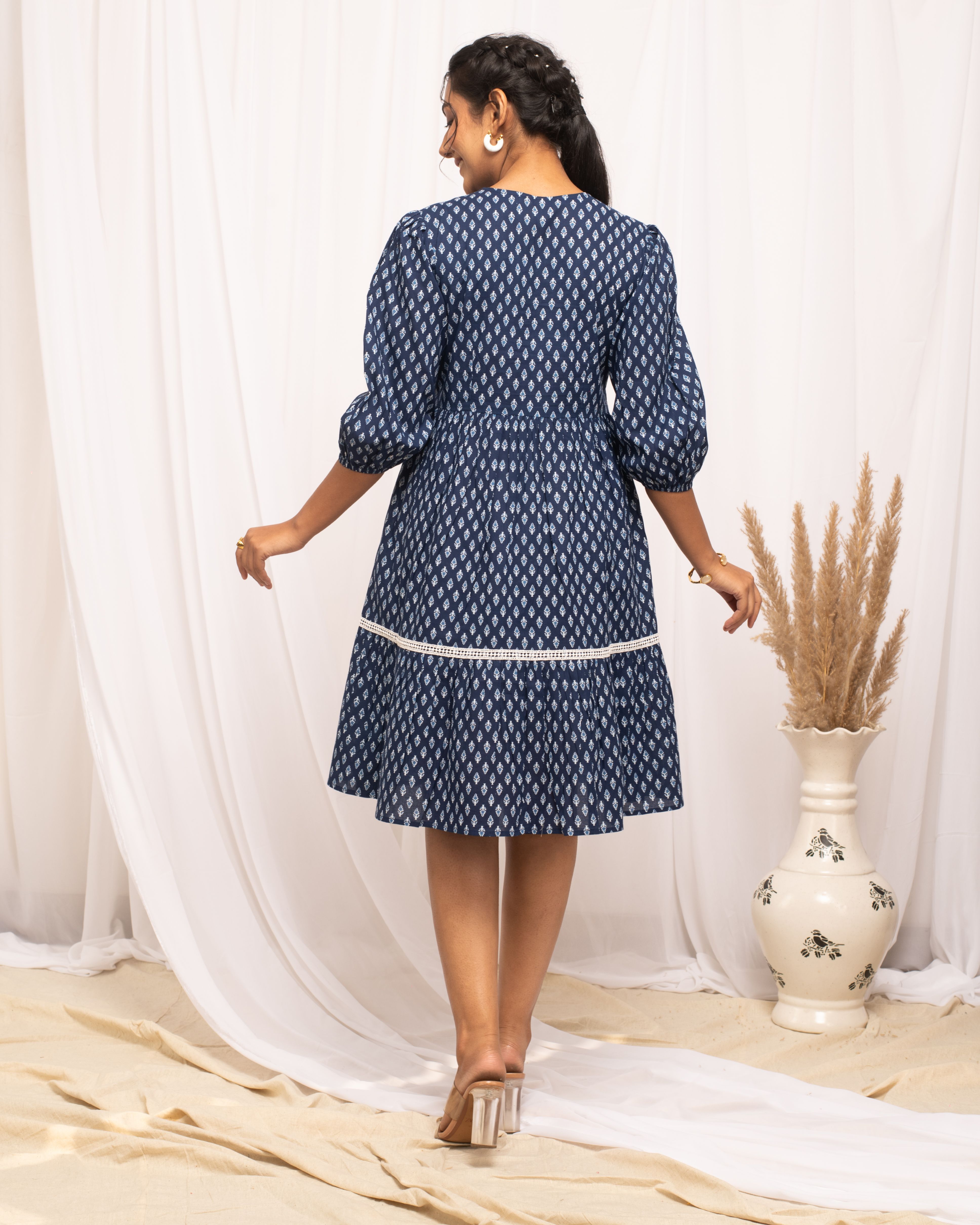 [4] => Blue Cotton Floral Printed Dress