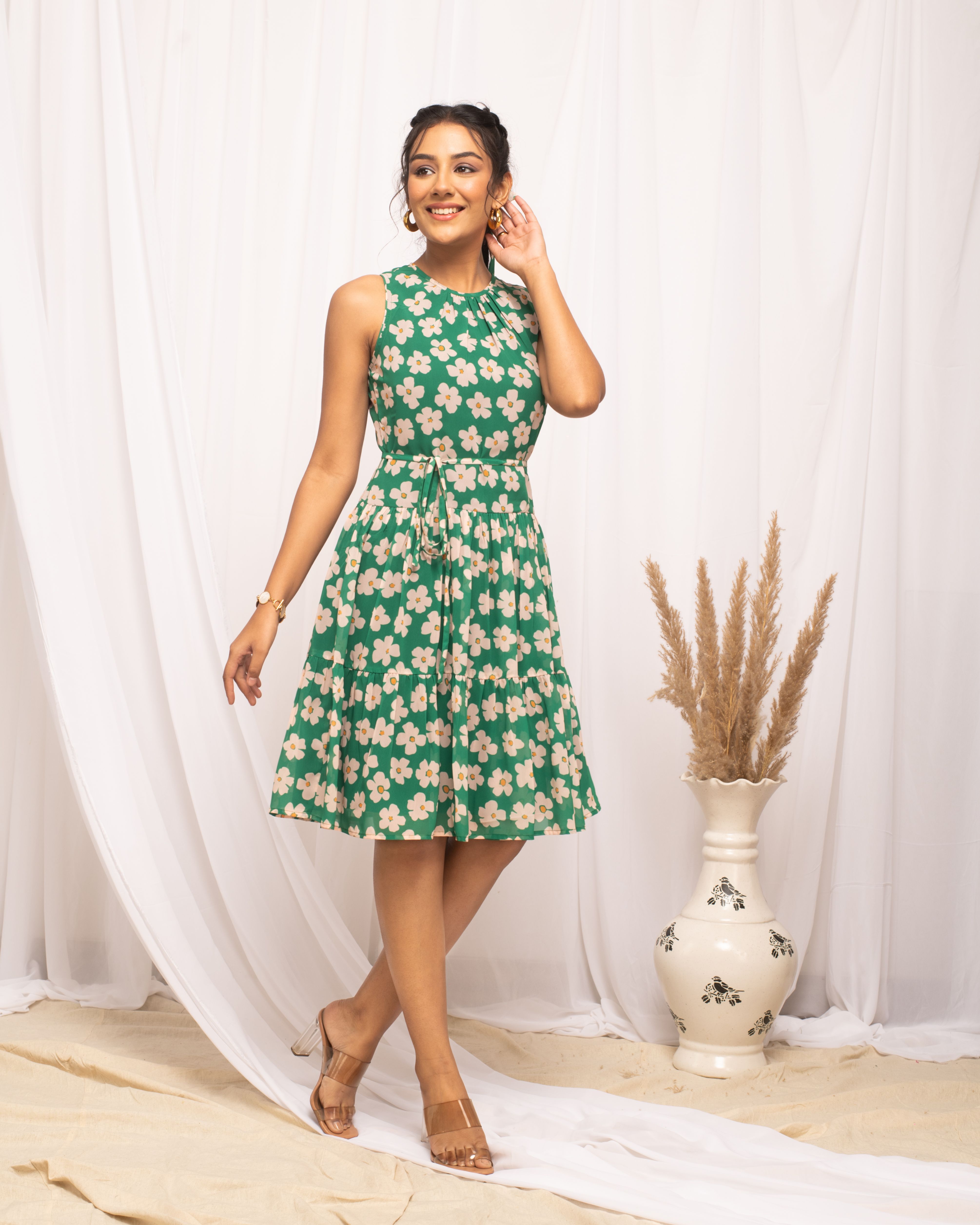 Experience the fusion of grace and style with MIAOW Green Georgette Dress. The enchanting floral patterns and luxurious fabric blend together to offer a dress that’s ideal for any occasion where you want to stand out. Dress Material: Georgette with Crepe Lining Style: Skater Dress || Knee Length with Sleeveless Package contain: 1 Dress Styling Suggestion Complete the look with delicate gold jewelry and strappy sandals. A sleek clutch will add the finishing touch, ensuring you’re ready to turn heads wherever you go.