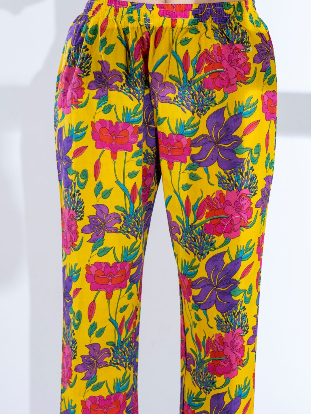 Curved style cotton fabric yellow color co-ord set