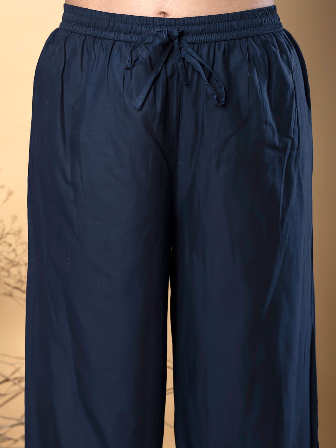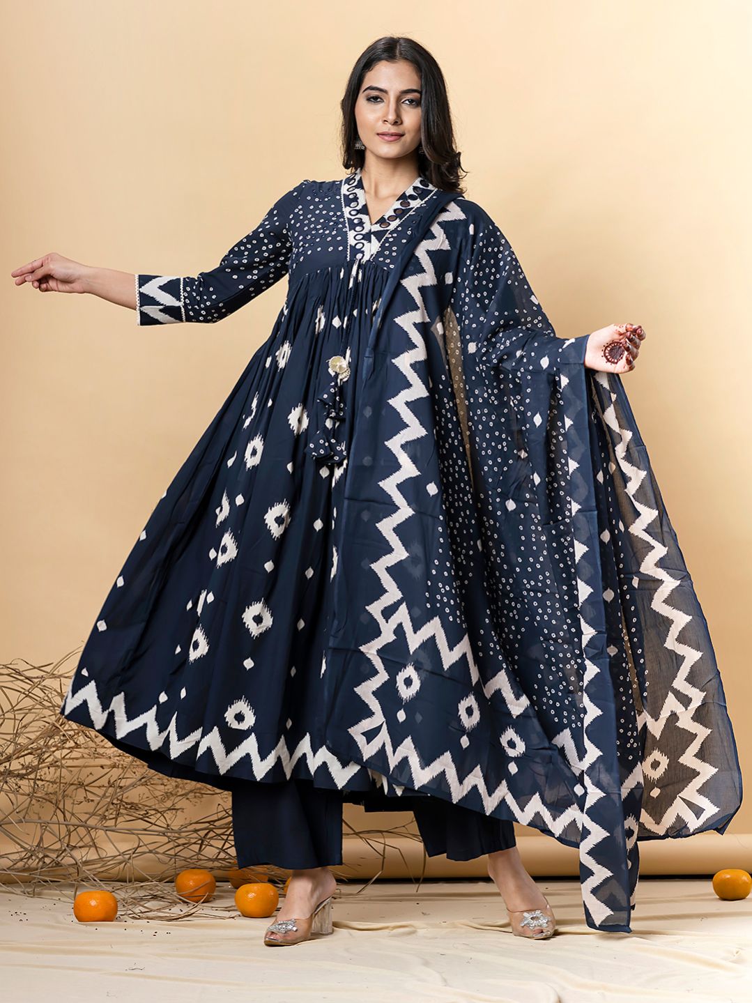 Frock style cotton fabric navy blue color kurta and bottom with dupatta