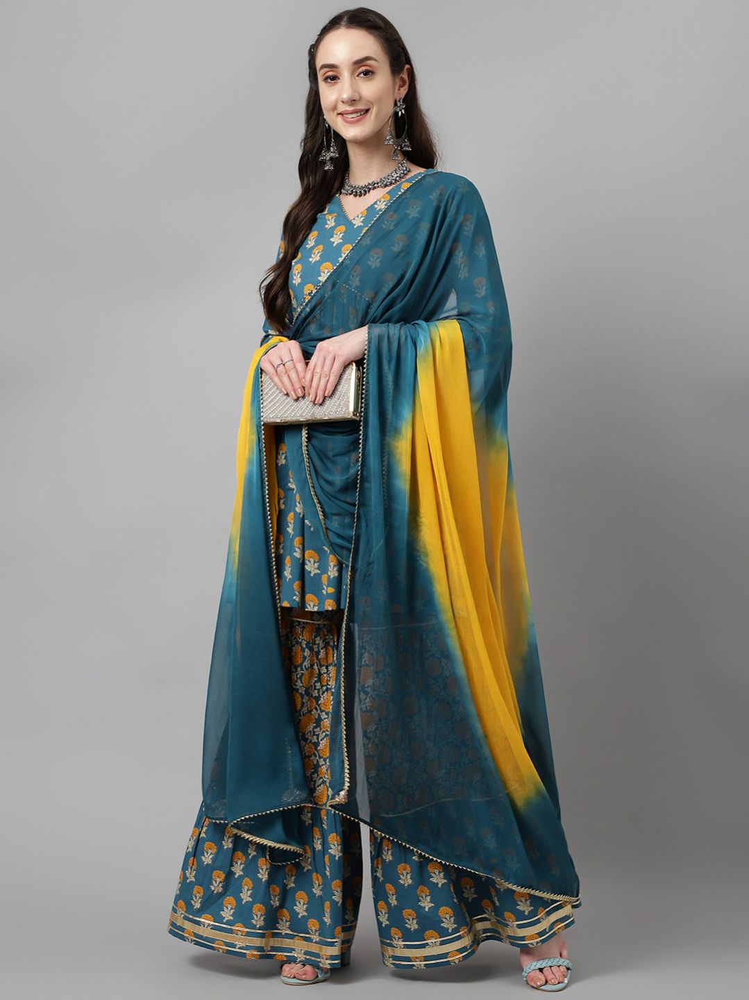 [3] => Pure Cotton Flared Kurta with Sharara and Dupatta